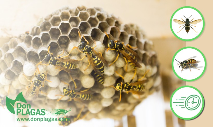 La presencia de avispas —ya sea avispa común o avispa asiática (Vespa velutina)— exige una eliminación profesional inmediata. Manipular un nido por cuenta propia es extremadamente peligroso: una colonia puede contener cientos o miles de individuos dispuestos a defenderse.